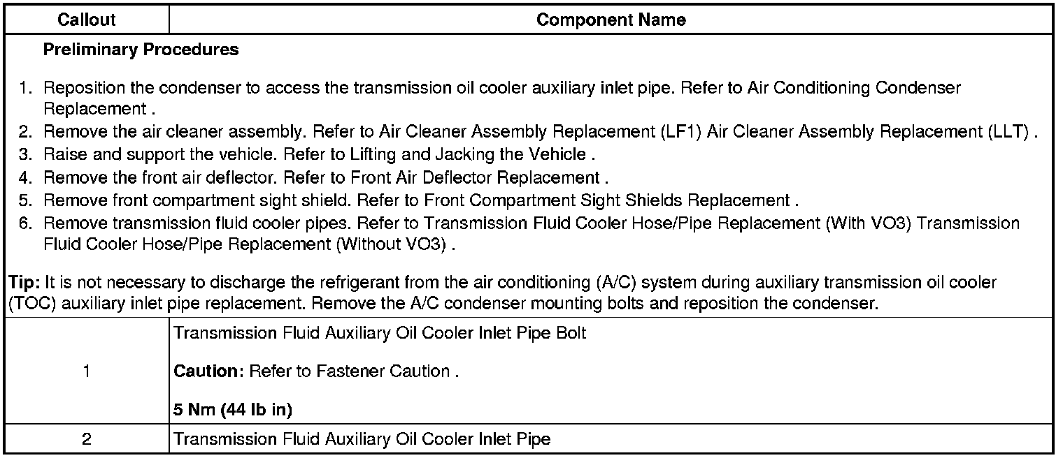 Transmission Fluid Auxiliary Cooler Inlet Pipe Replacement