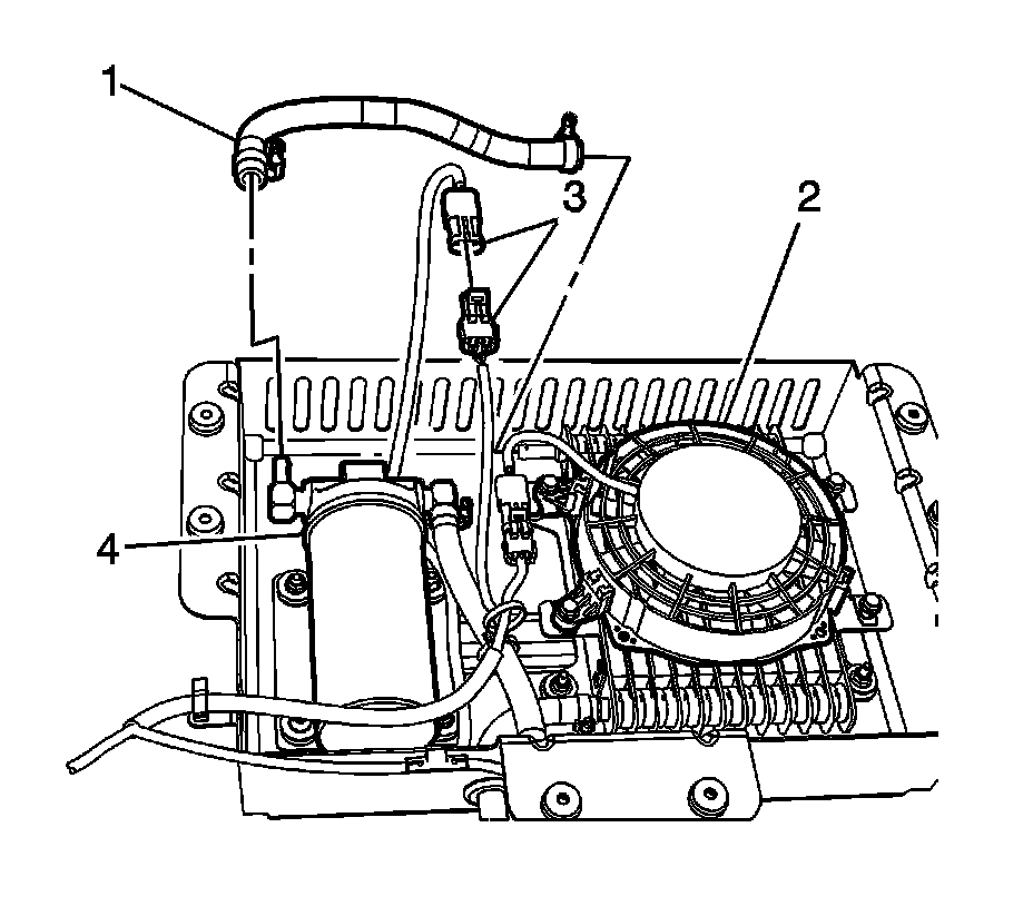 4. Remove the hose (1) from differential cooler (2) and the pump (4).