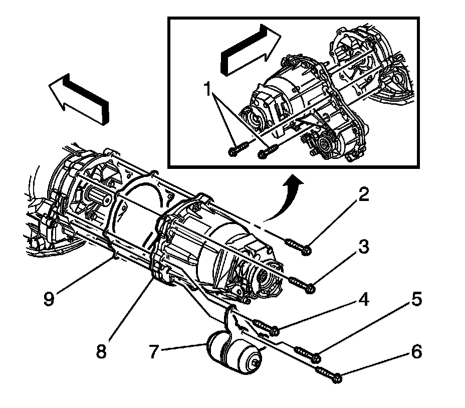 3. Remove the rear propeller shaft. Refer to Rear Propeller Shaft Replacement (RPO LSA) (Service and Repair)Rear Propeller Shaft Replacement (RPO LLT/LF1with MX7 or MN6) (Service and Repair)Rear Propeller Shaft Replacement (RPO LLT, LF1 with MXO) (Service and Repair).
