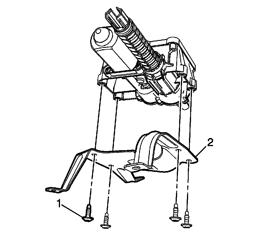 1. If removed, install the electronic park brake module bracket bolts (1) and the bracket (2) and tighten the bolts to 9 Nm (80 lb in).