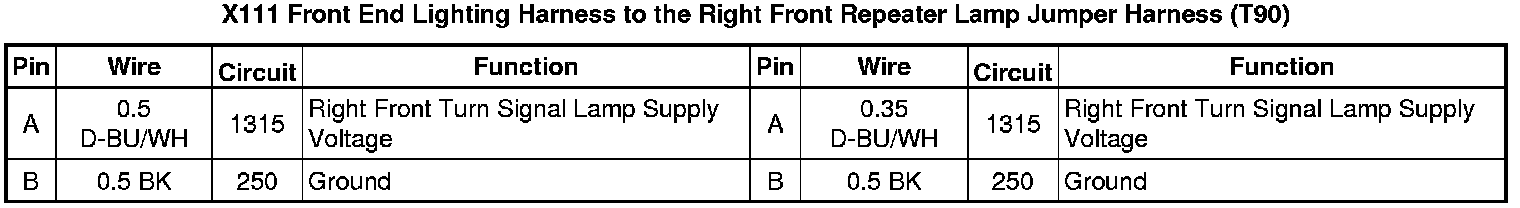 X111 Front End Lighting Harness to the Right Front Repeater Lamp Jumper Harness (T90)