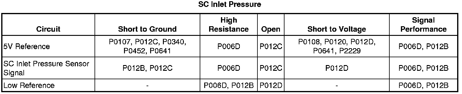 At idle the SC Inlet Pressure parameter represents the calculated difference between BARO and the reduced pressure that is present in the supercharger intake plenum as a positive value. At wide open throttle the SC Inlet Pressure parameter represents the calculated difference between BARO and the increased pressure that is present in the supercharger intake plenum, and should be very close to zero.