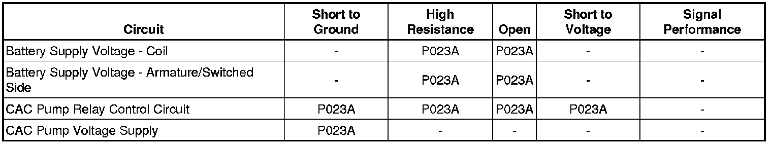 * A slight resistance of 1-4ohm on the CAC pump ground circuit or the CAC pump or pump relay B+ circuits may cause this DTC to set.