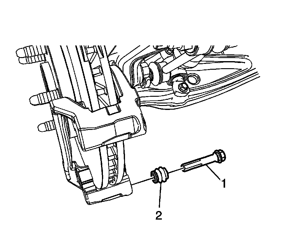 6. Install the upper brake caliper guide pin (1) to the guide pin seal (2).