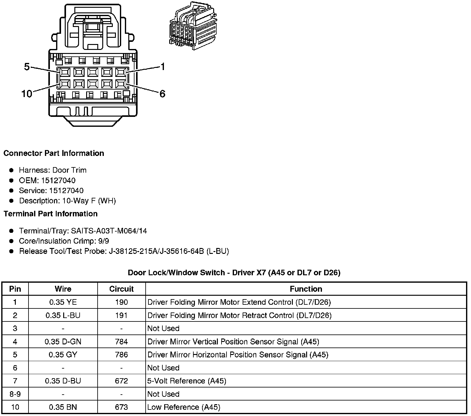 Door Lock/Window Switch - Driver X7 (A45 or DL7 or D26)