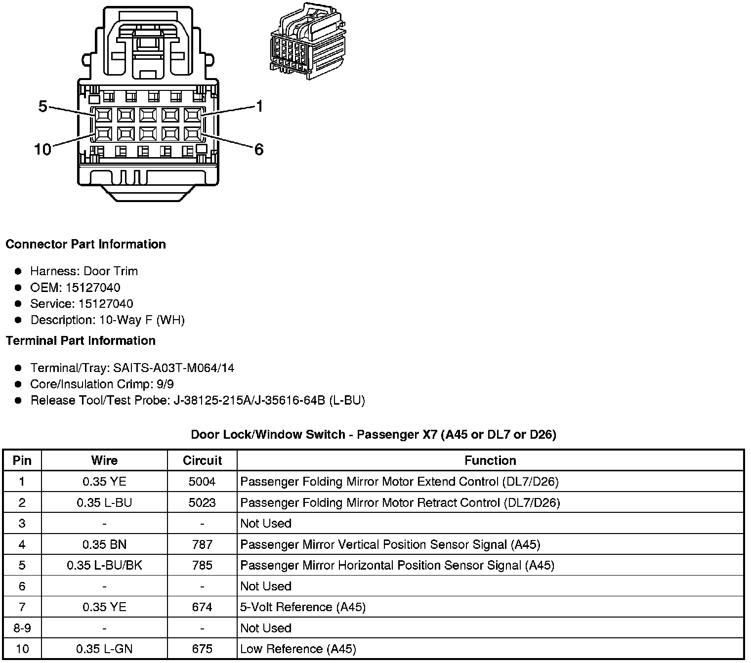 Door Lock/Window Switch - Passenger X7 (A45 or DL7 or D26)