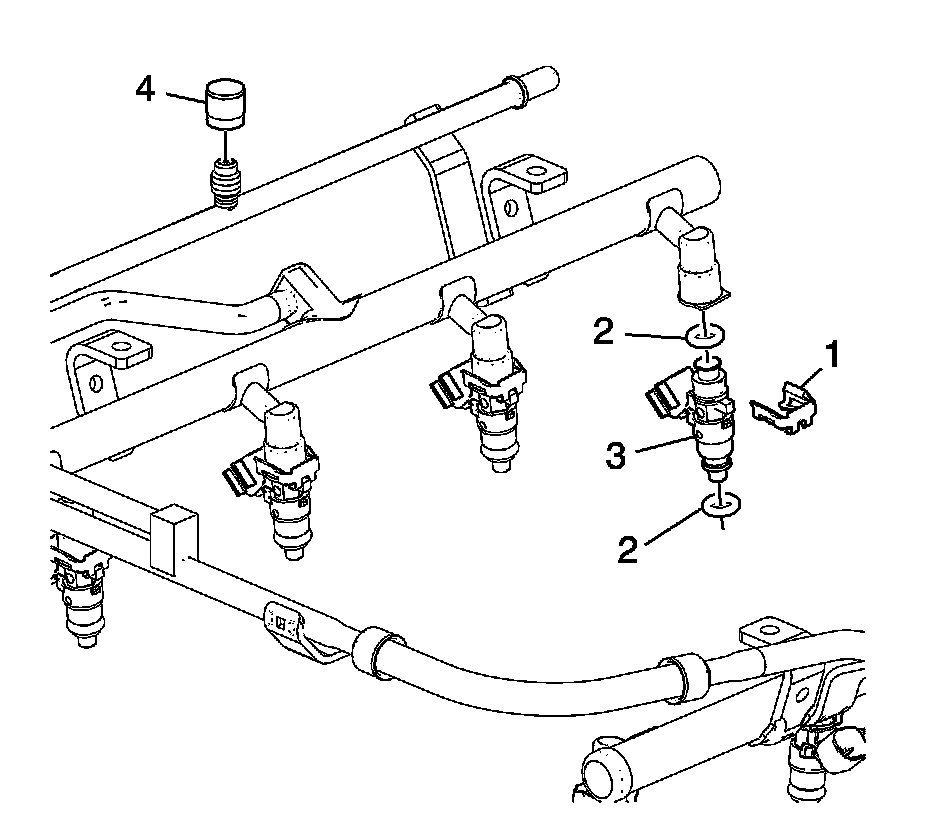 5. Install the fuel rail assembly (3). Install the right side first, then install the left side with flex hose until all injectors have entered their bores.