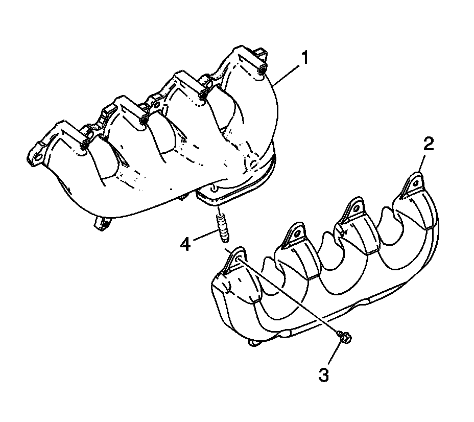 4. Install the exhaust manifold (2), NEW gasket (3), and bolts (1).