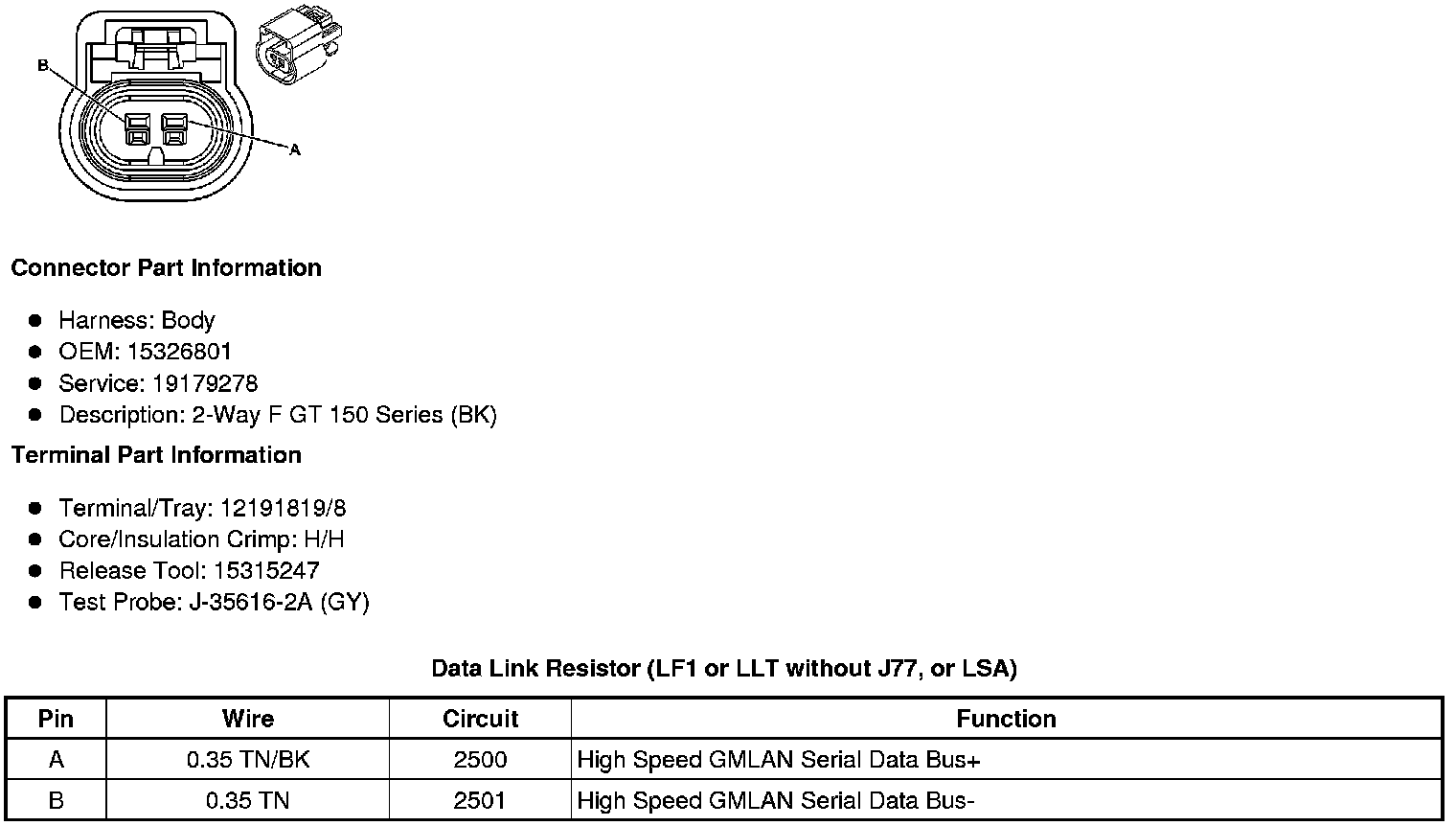 Data Link Resistor (LF1 or LLT without J77, or LSA)