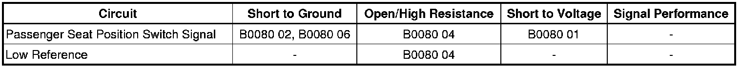 - Passenger Seat Position Sensor Circuit Short to Battery