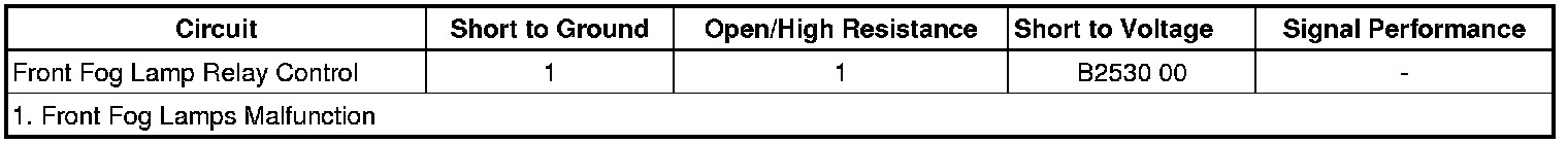 When DTC B2530 00 is present, the front fog lamps will not operate when the park lamps are ON and the front fog lamp switch is active.