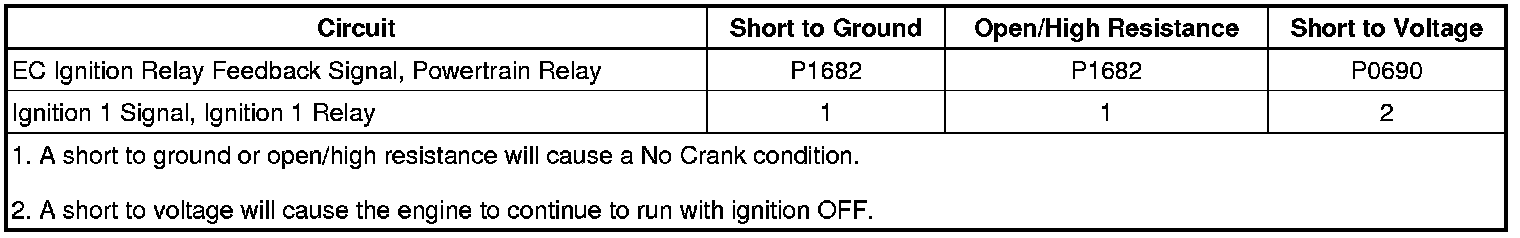 Note: The Ignition 1 Signal is supplied by the Ignition relay. The EC Ignition Relay Feedback signal is supplied by the powertrain relay.