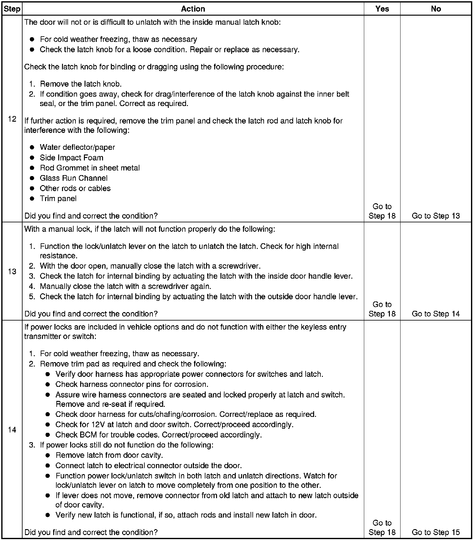 Door Will Not Open/Close, Door Binding, or Locks, Handles, or Cylinders Do Not Function