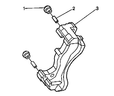 8. Remove the bushings (2) from the brake caliper bracket mounting bores.
