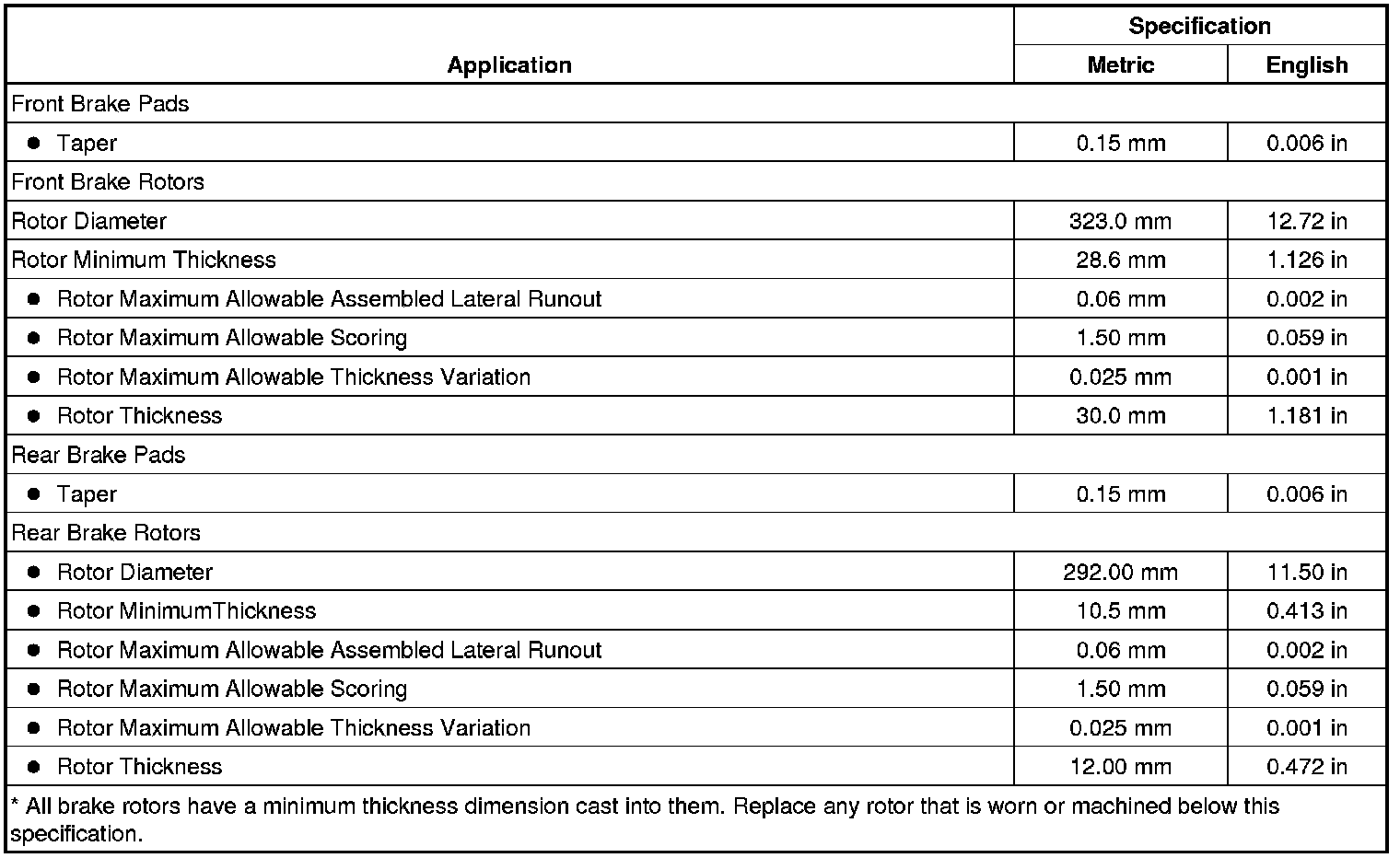 Disc Brake Component Specifications (JL9)