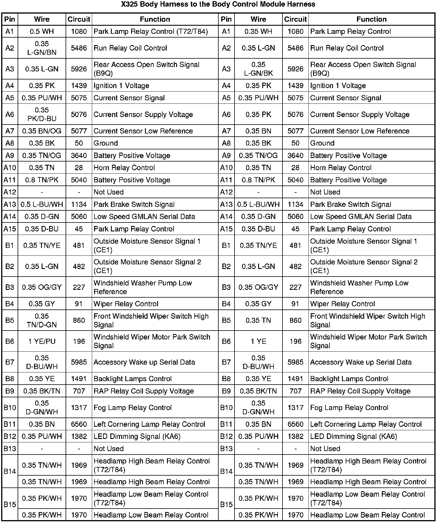 X325 Body Harness to the Body Control Module Harness