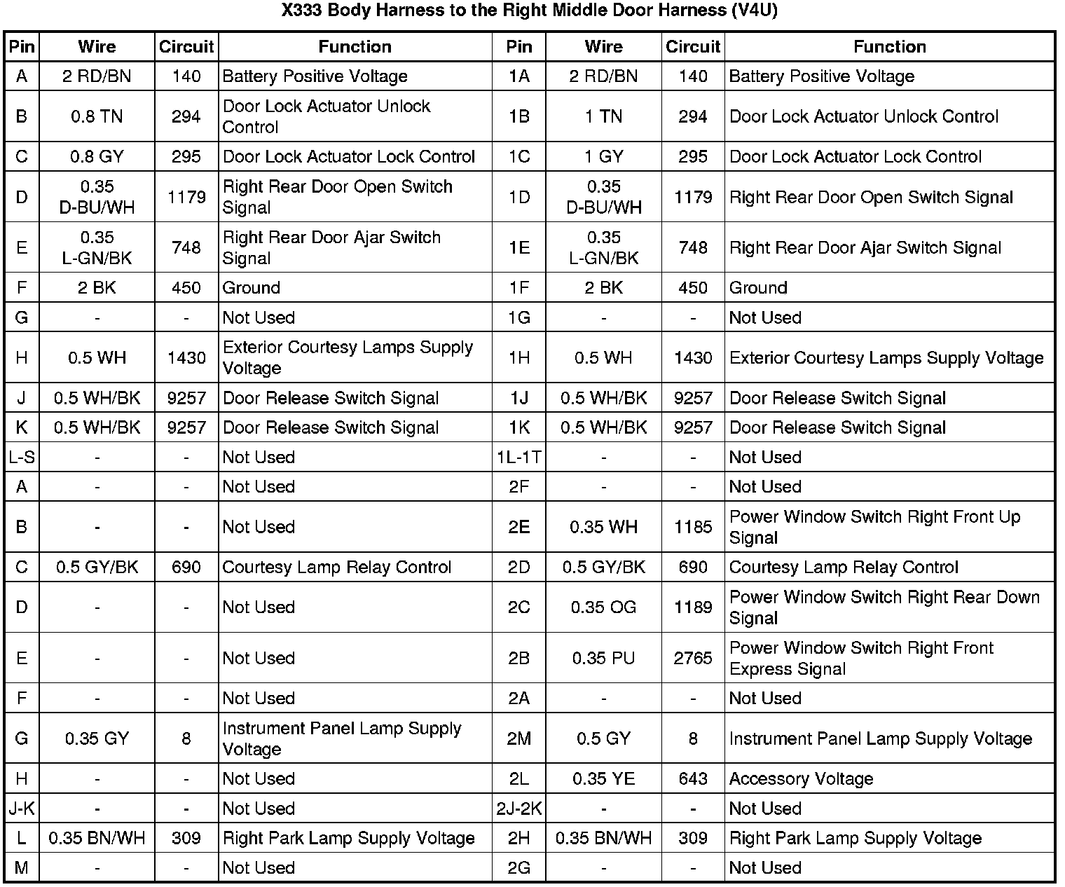 X333 Body Harness to the Right Middle Door Harness (V4U)