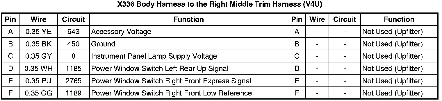 X336 Body Harness to the Right Middle Trim Harness (V4U)