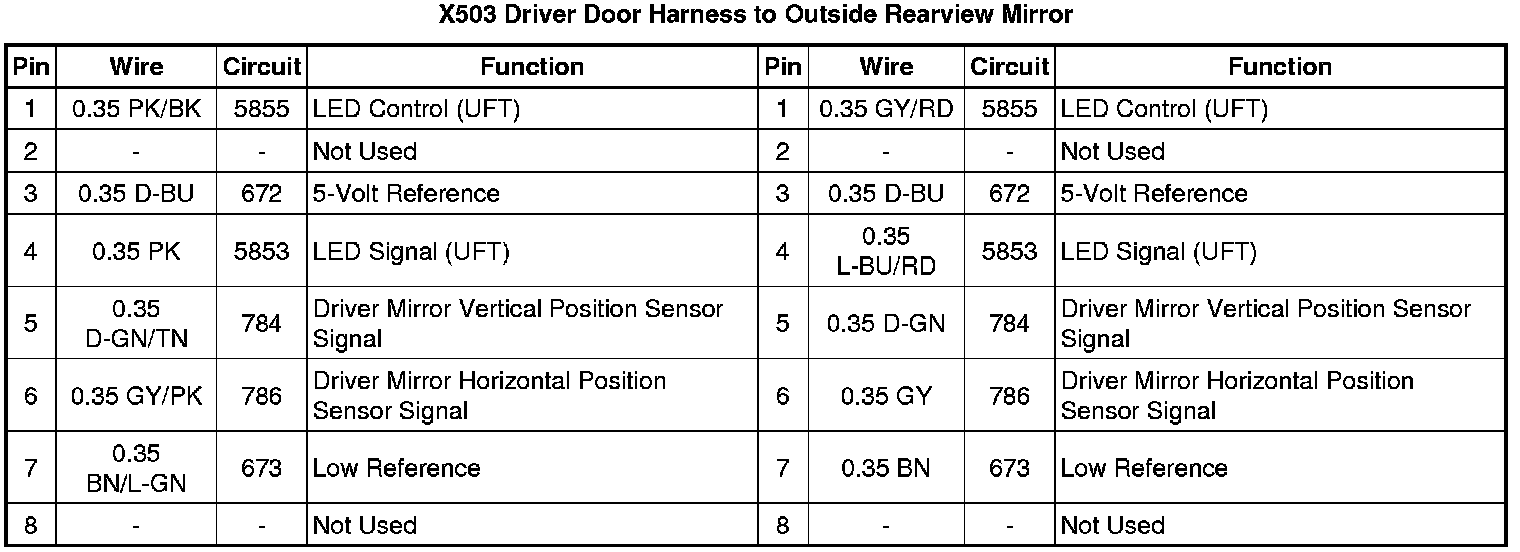 X503 Driver Door Harness to Outside Rearview Mirror