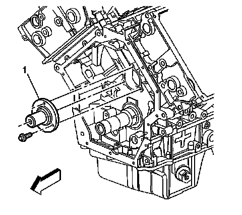 Install the intermediate sprocket shaft (1) and the retaining bolts. Tighten the intermediate sprocket shaft bolts to 15 Nm (11 lb ft).