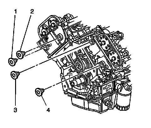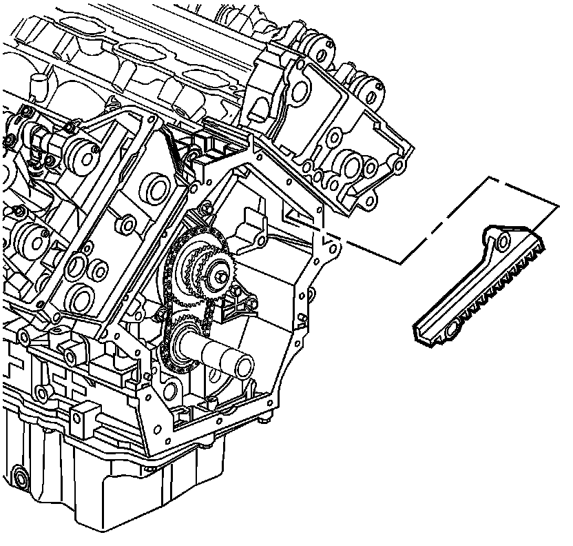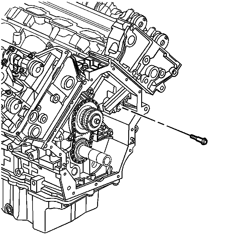 1. Remove the left secondary camshaft drive chain tensioner. Refer to Secondary Camshaft Intermediate Drive Chain Tensioner Replacement - Left Side (Secondary Camshaft Intermediate Drive Chain Tensioner Replacement - Left Side).