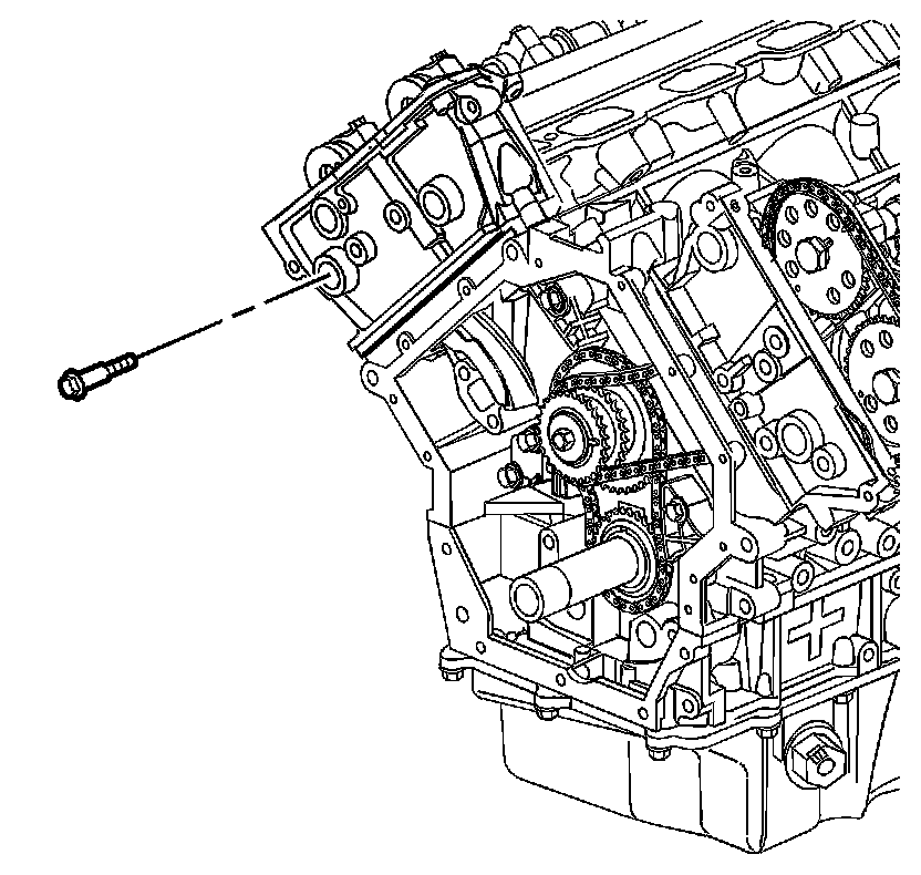 1. Remove the right secondary camshaft drive chain tensioner. Refer to Secondary Camshaft Intermediate Drive Chain Tensioner Replacement - Right Side (Secondary Camshaft Intermediate Drive Chain Tensioner Replacement - Right Side).