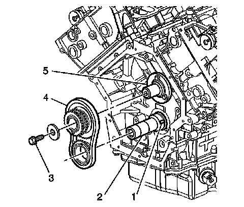 5. Remove the camshaft intermediate sprocket retaining bolt (3).