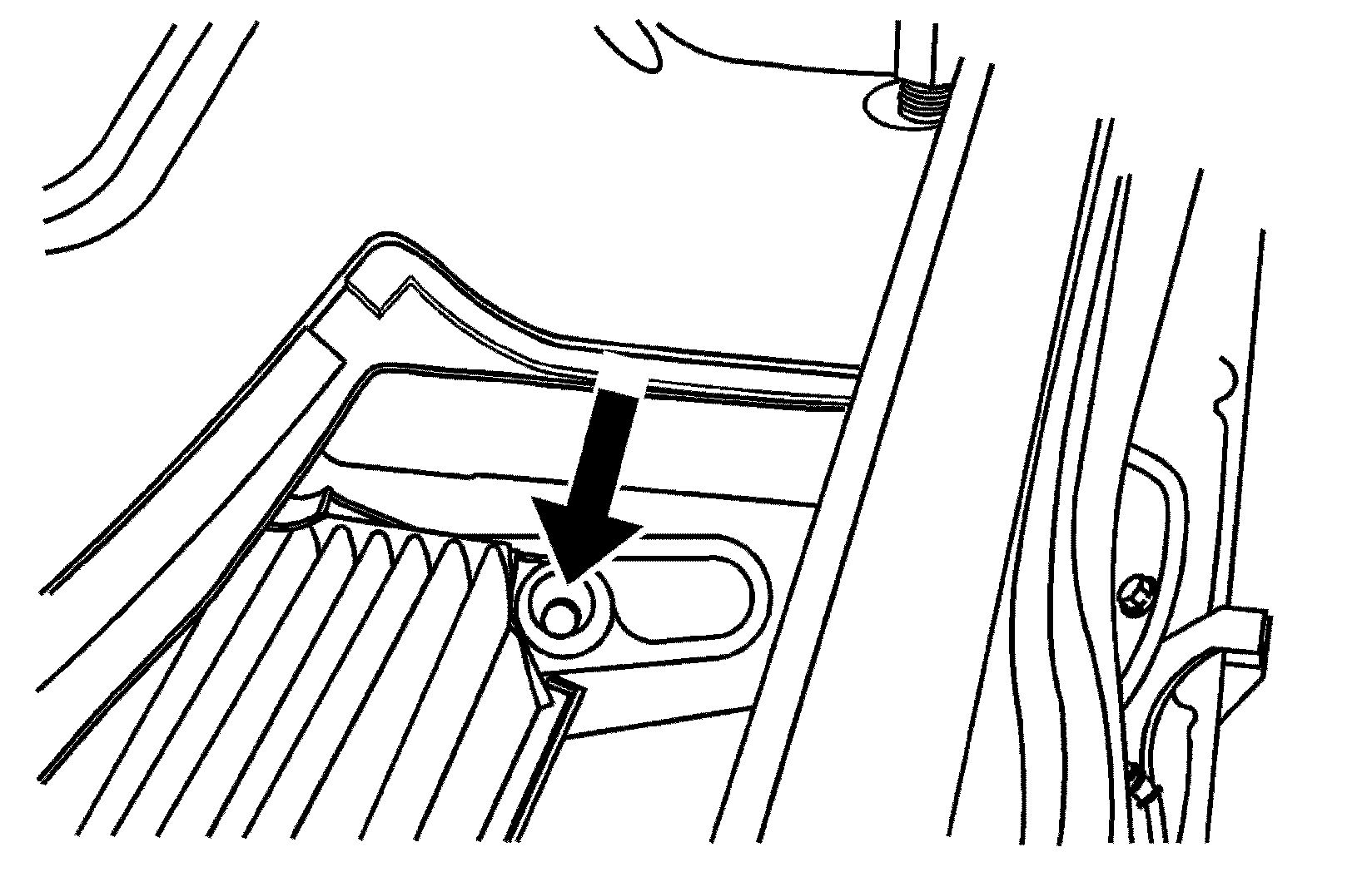 2. Then, insert a tool behind the push pin located on the inboard side of the air filter compartment to carefully pry the pin out.