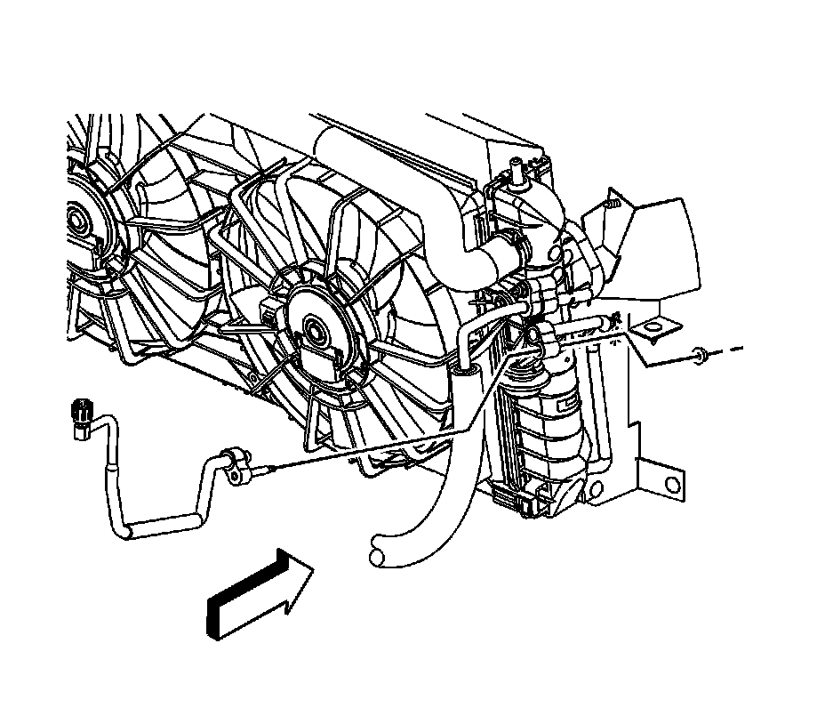 Note: If replacing the condenser, add refrigerant oil to condenser. Refer to Refrigerant System Specifications (Specifications) for system capacity information.