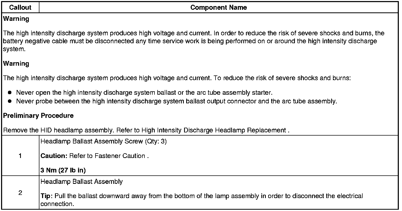 Headlamp Ballast Replacement