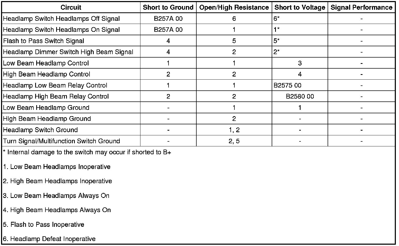 • If the low beam headlamps do not turn ON and OFF when commanded, refer to Headlamps Malfunction - Low Beam.