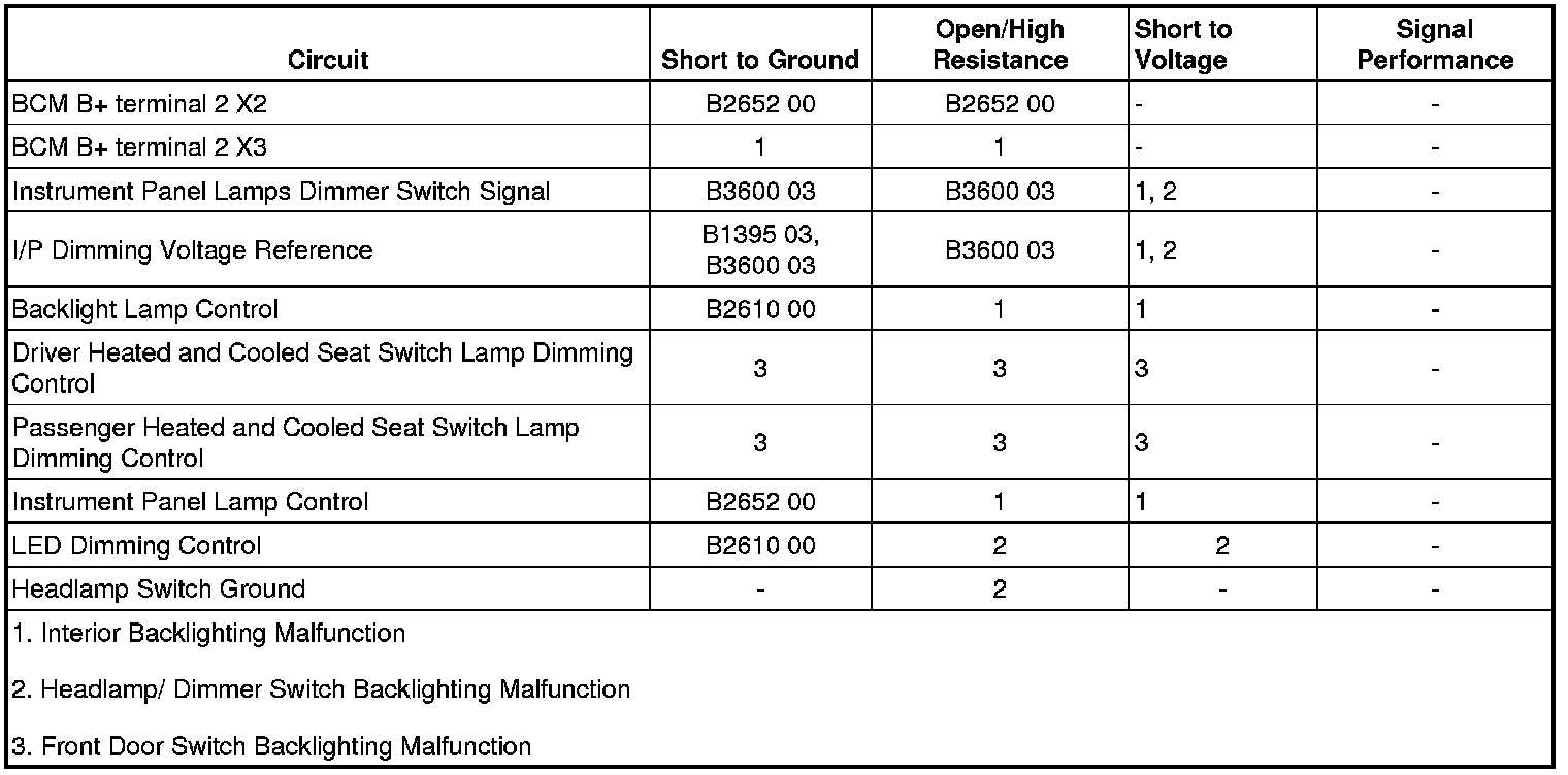 • If the scan tool dimmer control operates normal, refer to Interior Backlighting Malfunction.