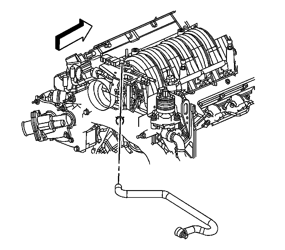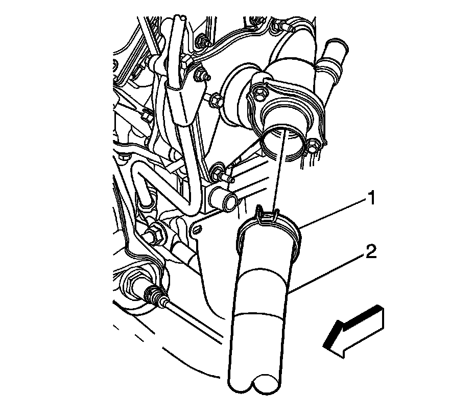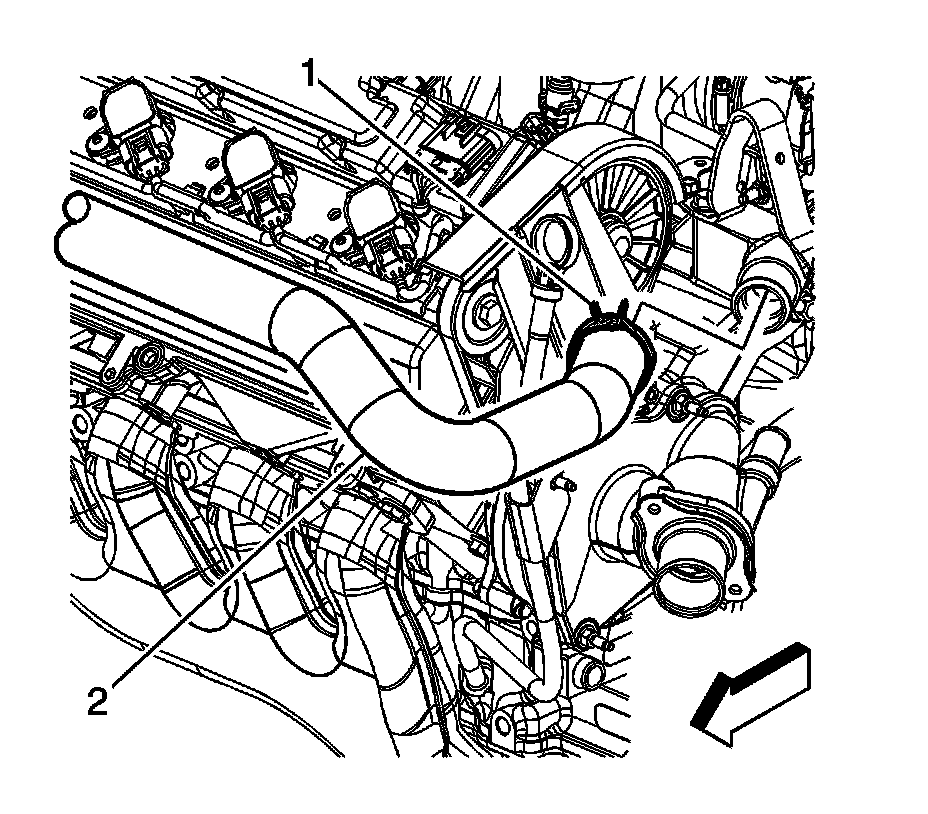 1. Drain the cooling system. Refer to Cooling System Draining and Filling (Static Fill) (Cooling System Draining and Filling (Static Fill))Cooling System Draining and Filling (Vac-N-Fill) (Cooling System Draining and Filling (Vac-N-Fill)).