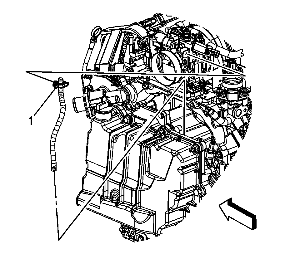 9. Remove the transaxle vent hose clip (1) from the bracket.