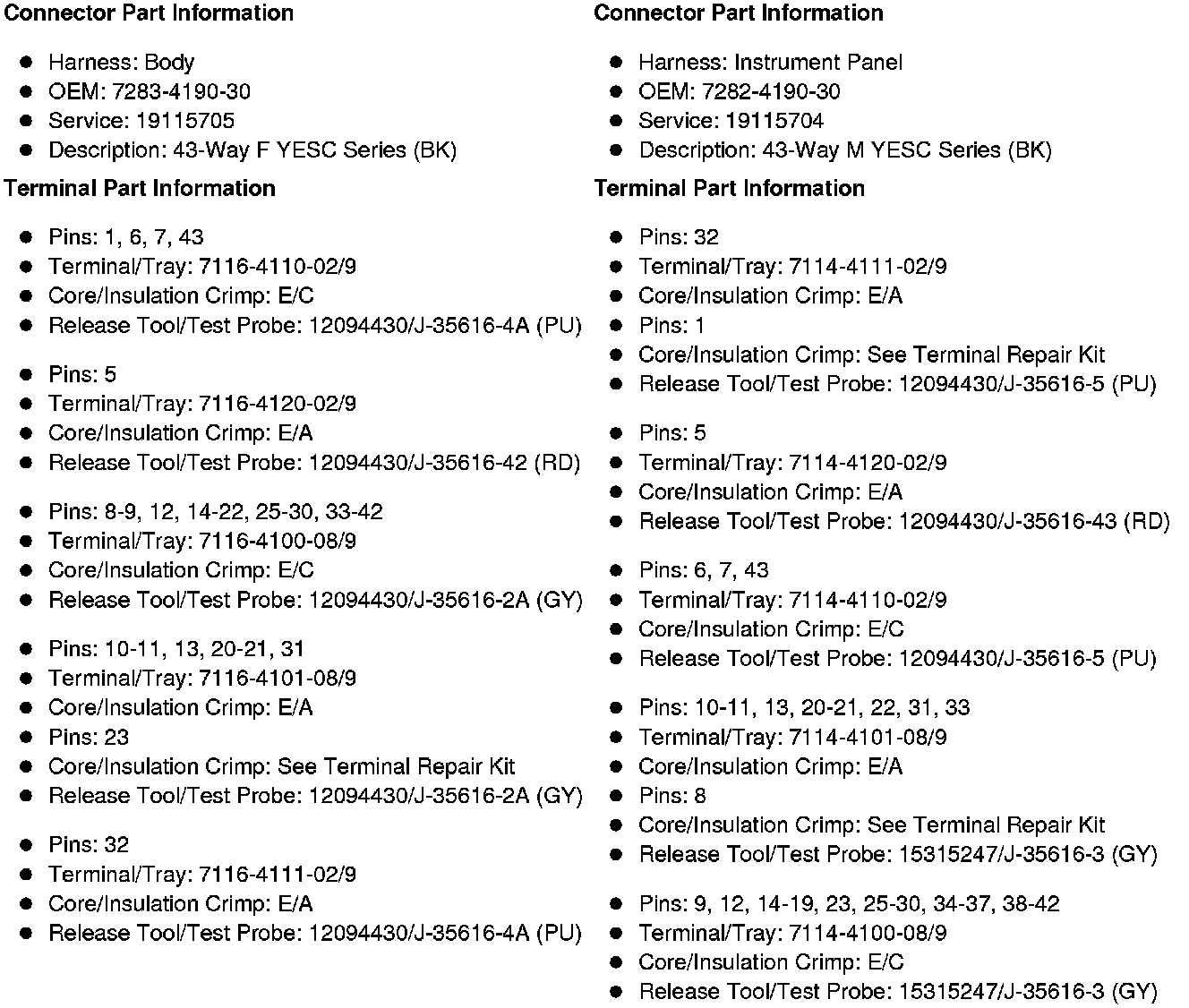 Connector End Views By Number