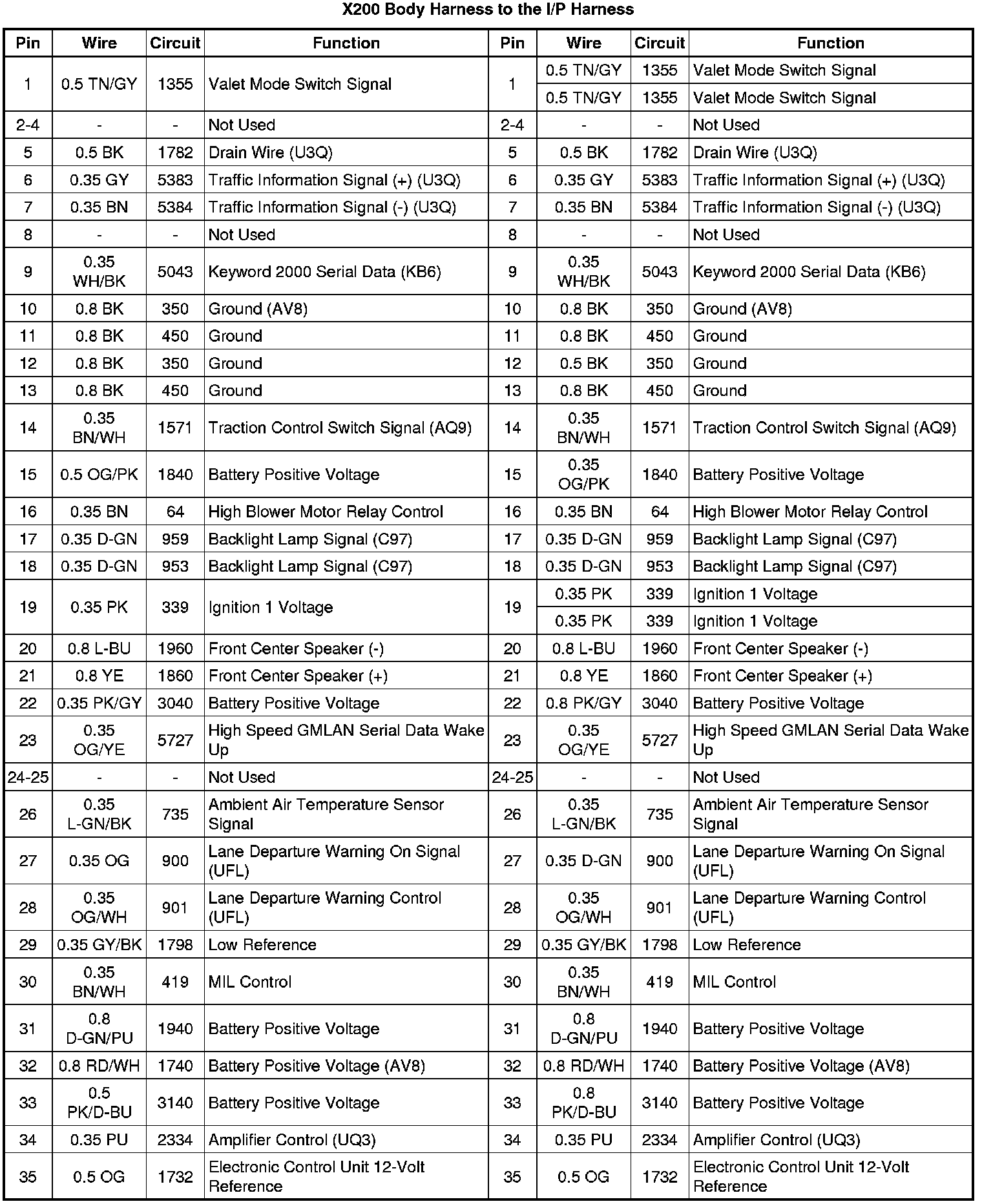 X200 Body Harness to the I/P Harness