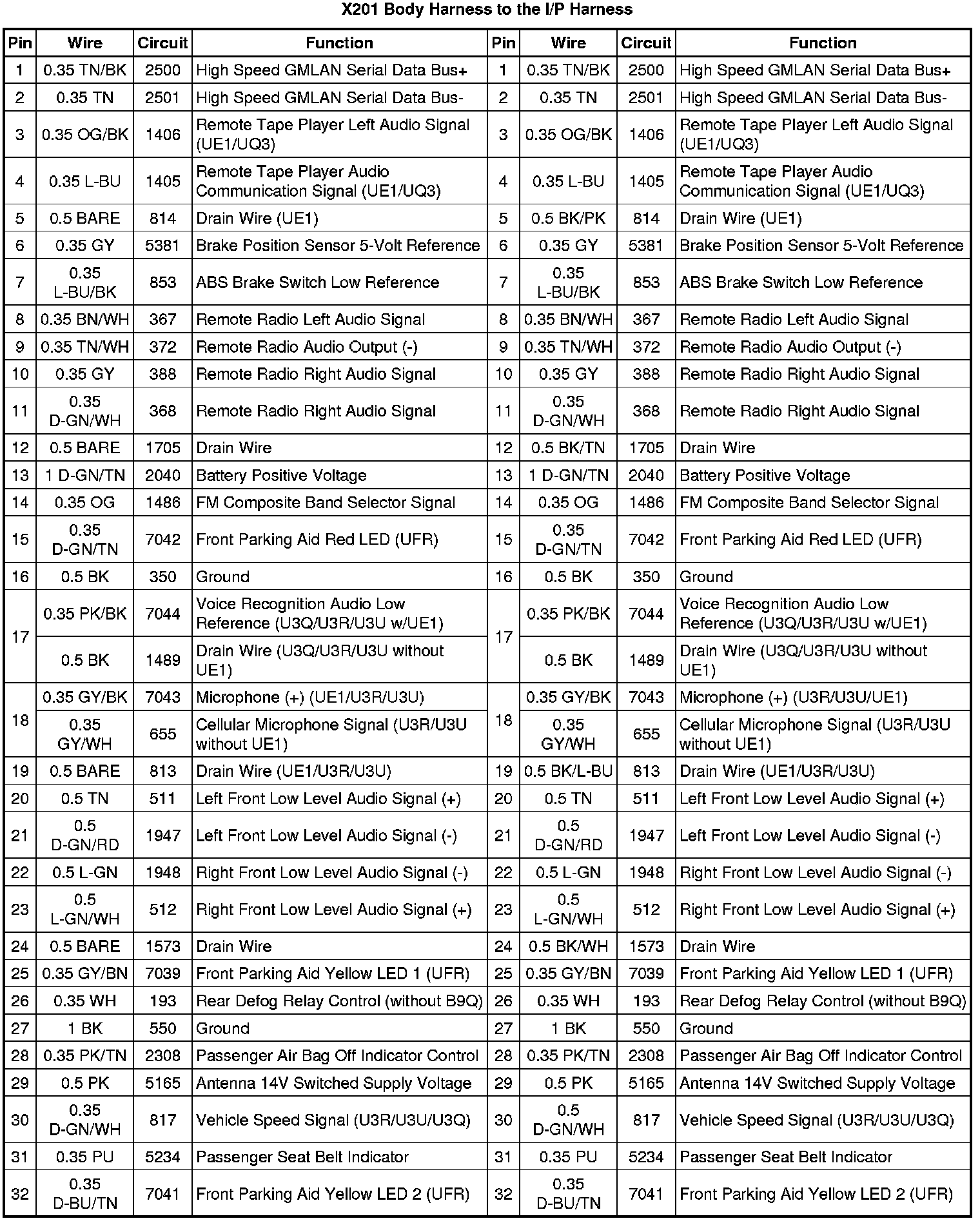 X201 Body Harness to the I/P Harness
