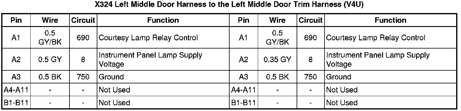 X324 Left Middle Door Harness to the Left Middle Door Trim Harness (V4U)