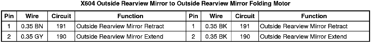 X604 Outside Rearview Mirror to Outside Rearview Mirror Folding Motor