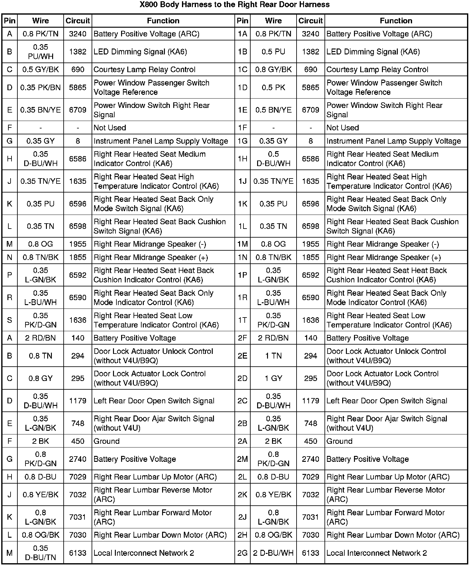 X800 Body Harness to the Right Rear Door Harness