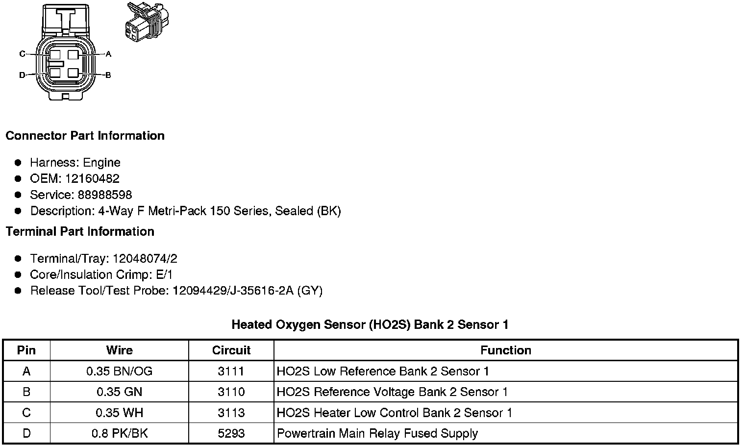 Heated Oxygen Sensor (HO2S) Bank 2 Sensor 1