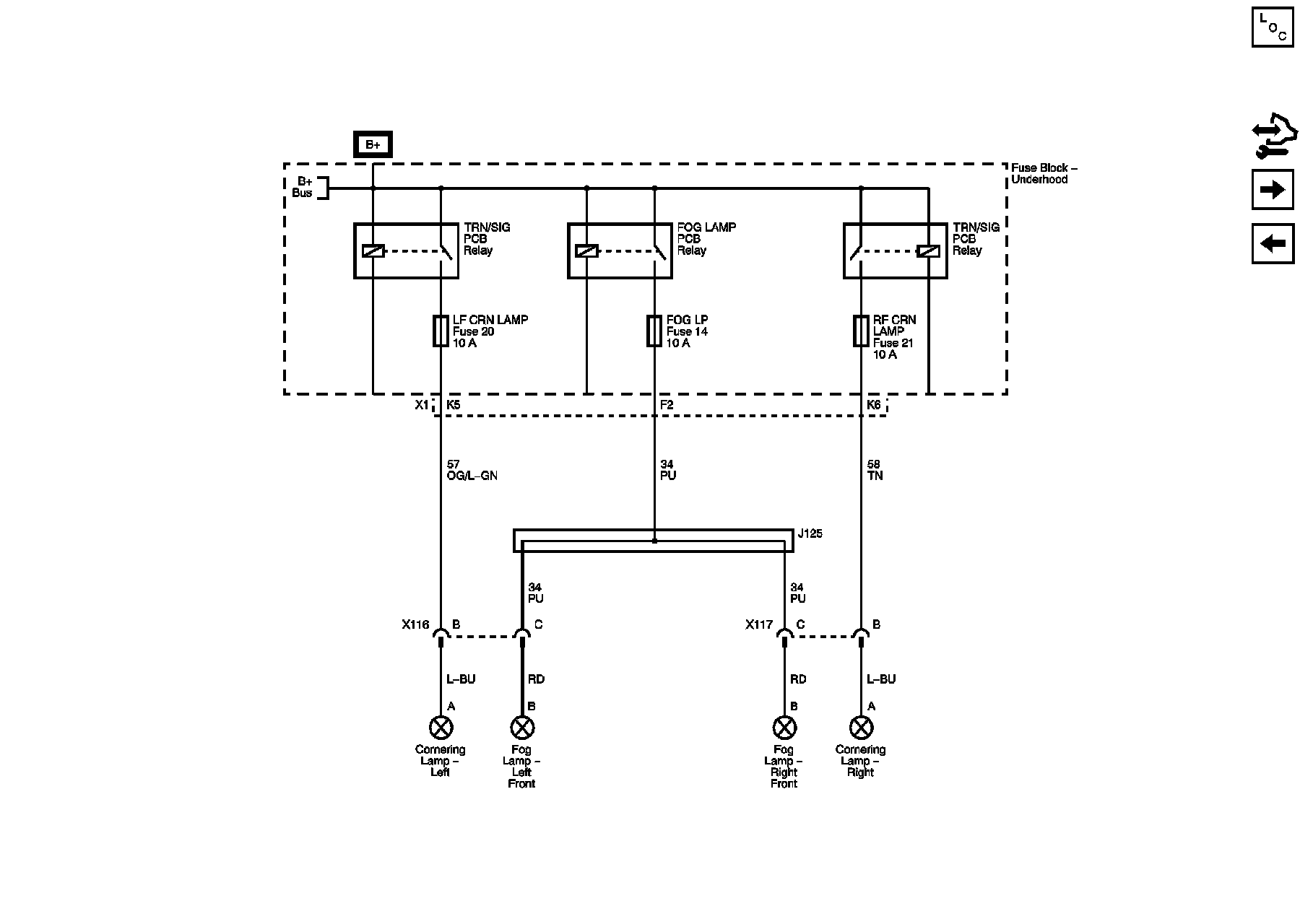 Underhood Fuse Block - TRN/SIG, FOG LAMP, TRN/SIG Relays, LT CRN LAMP, FOG, RT CRN LAMP Fuses