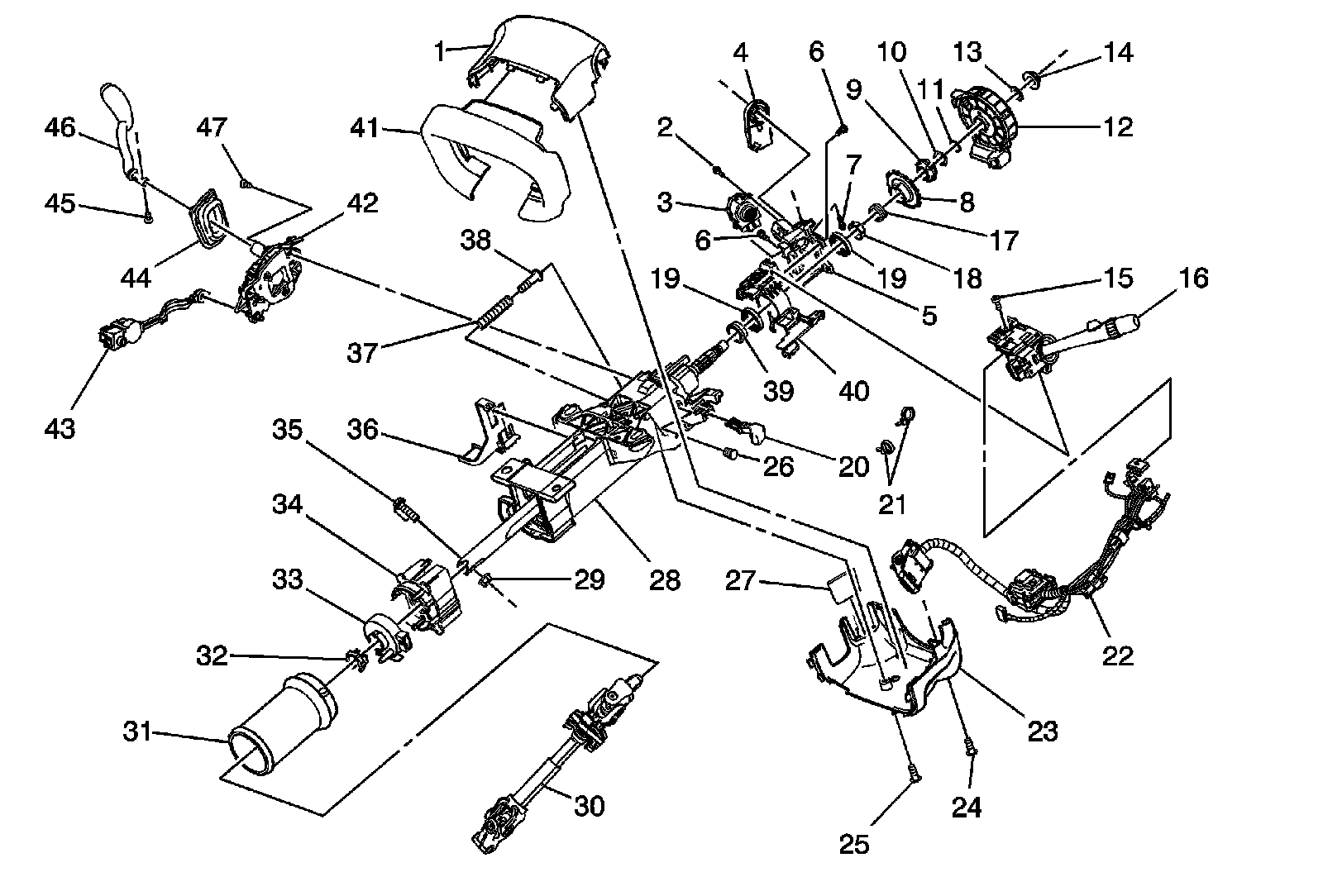 Steering Column Disassembled View (Manual Steering Column with AN3)