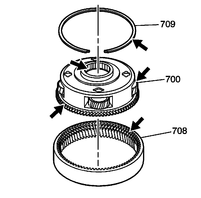13. Inspect the input carrier internal gear 708) for broken teeth.