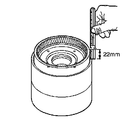 72. When the splines on the hubs are properly engaged, the bushing on the input carrier will drop below the forward and coast clutch support hub, producing a dull metal sound. The distance from the top edge of the forward and coast clutch housing to the top edge of the input internal gear is approximately 22 mm (0.886 in).