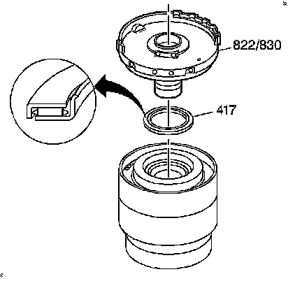 51. Install the new piston seals onto the forward clutch piston (807). Make sure that the outer seal does not roll backwards.