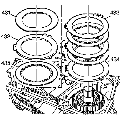 1. Inspect the second clutch wave plate (431) and all of the steel plates (433) for burning or damage.