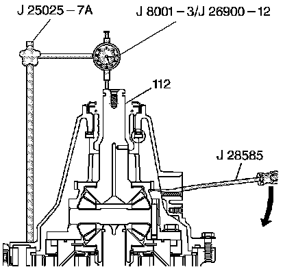 1. Install the J 25025-7A - dial indicator post and the J 8001 - dial indicator.