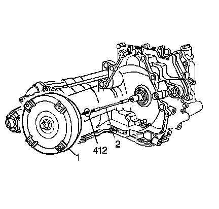 1. Inspect the torque converter (1) lugs for damage and inspect the oil pump driven shaft for damage. Replace the turbine shaft seal (412).