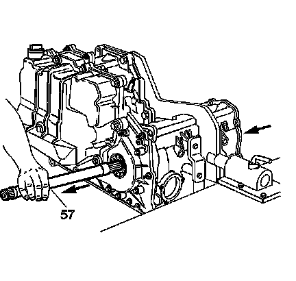 2. Push on the output shaft in order to expose the snap ring. Remove the output shaft snap ring (56).
